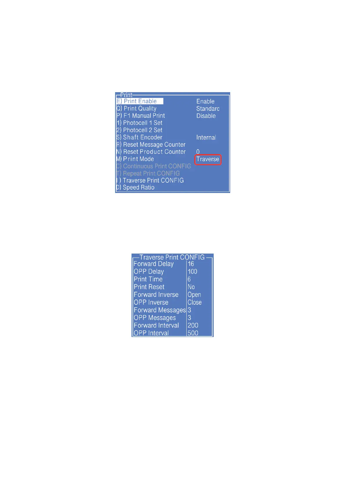2. Switch the "Print Mode" to “Traverse" then the printer is in the traverse printing mode.