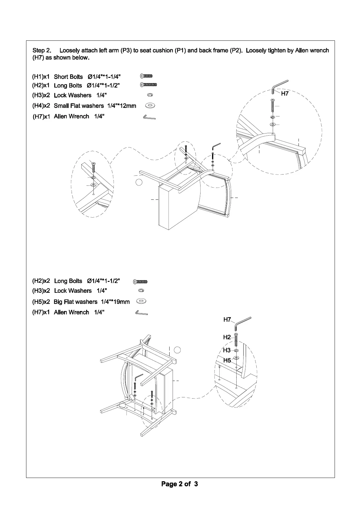 Loosely attach right arm (P4) with label "P4" to seat cushion (P1). Loosely tighten by Allen wrench (H7)