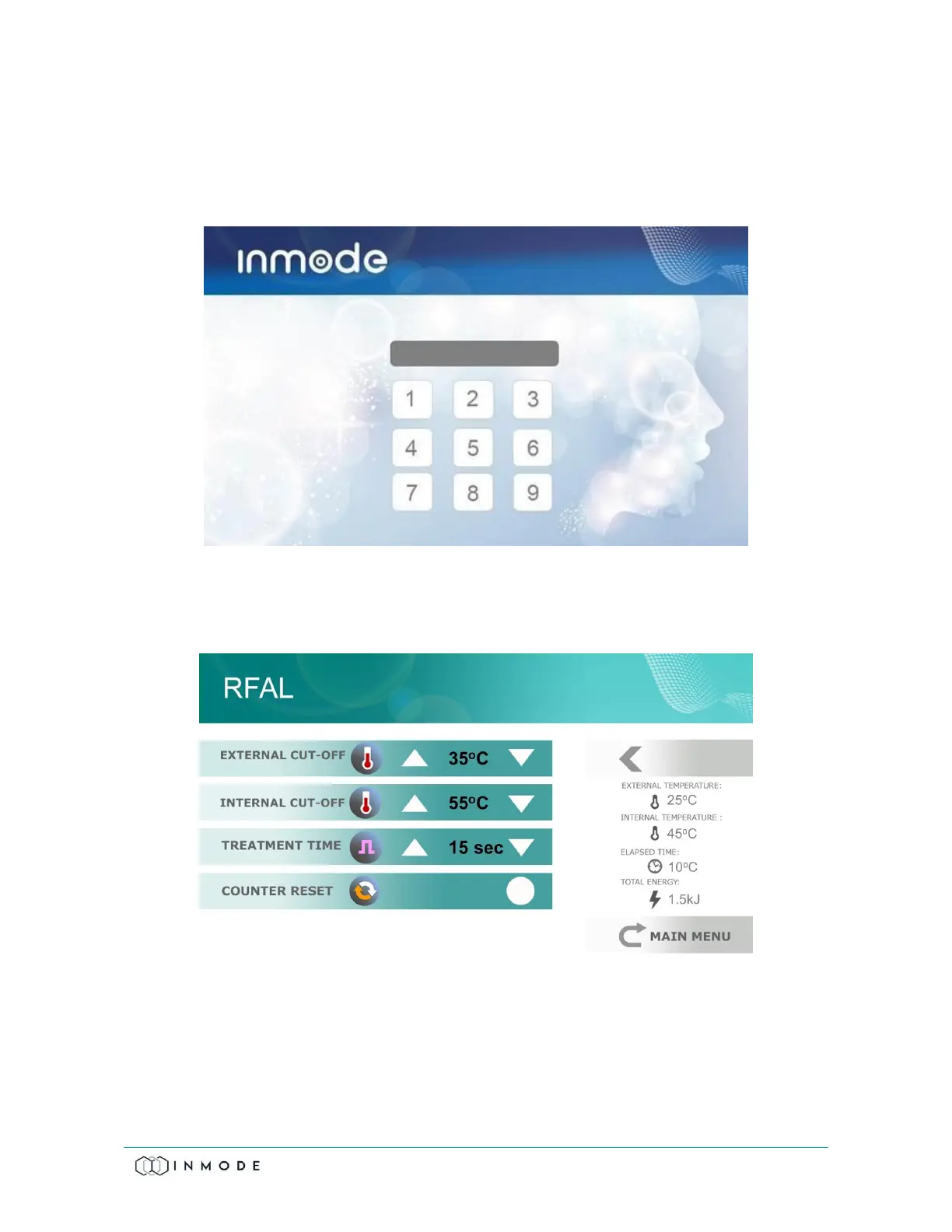 After the end of the self-test, the Treatment Screen appears.