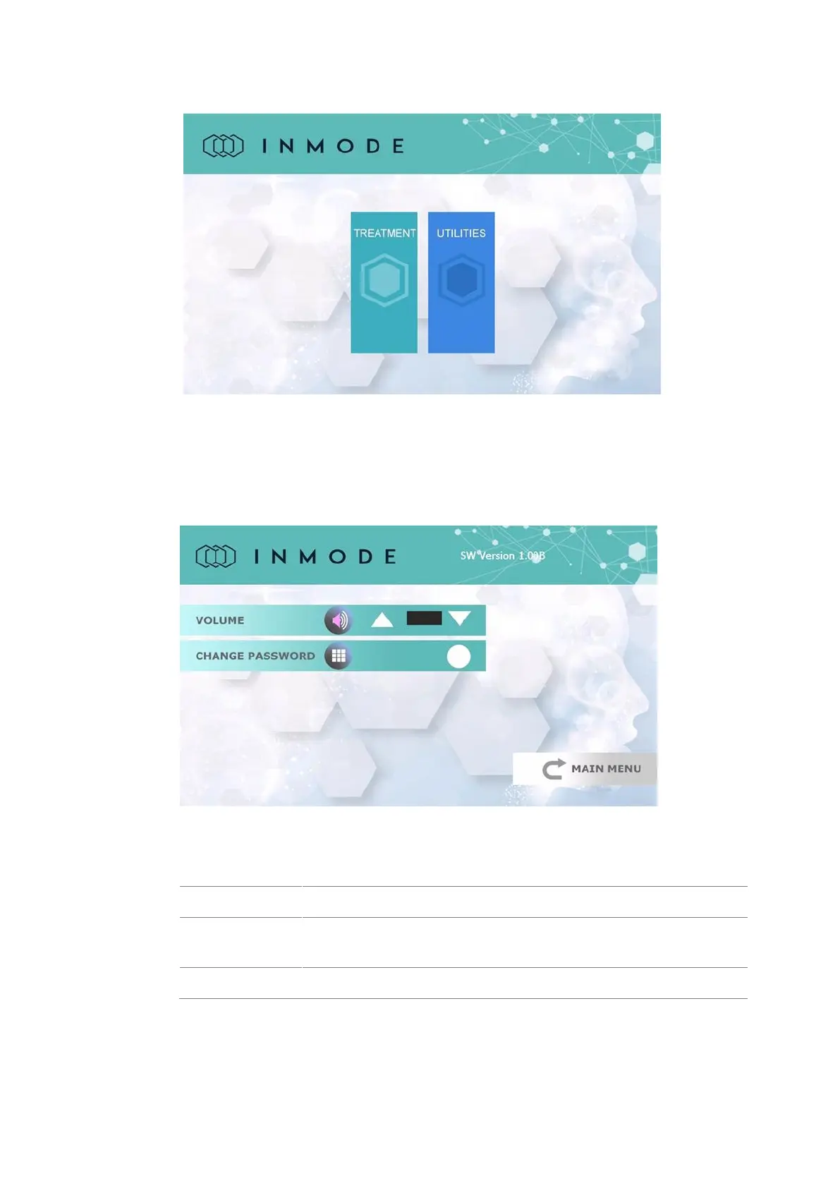 The Menu Screen allows the selection of the connected Applicator, or entry to the