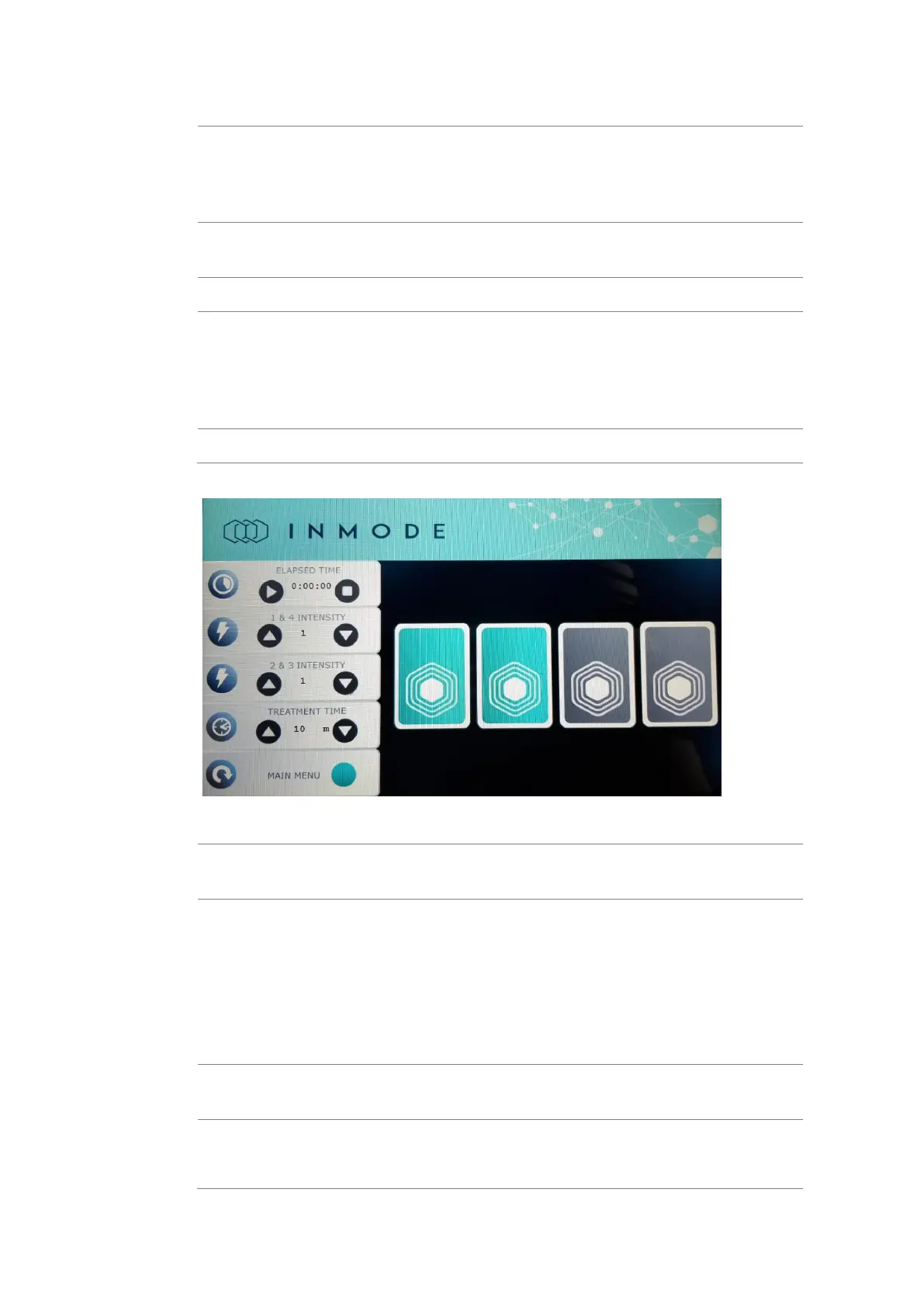 Applicator. Intensity level settings are changed from 1 to 50