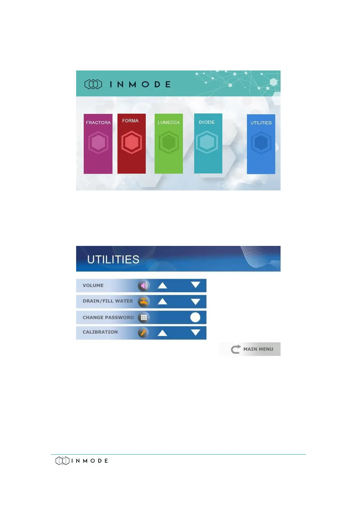 The Menu Screen allows the selection of the connected Handpiece, or entry to the