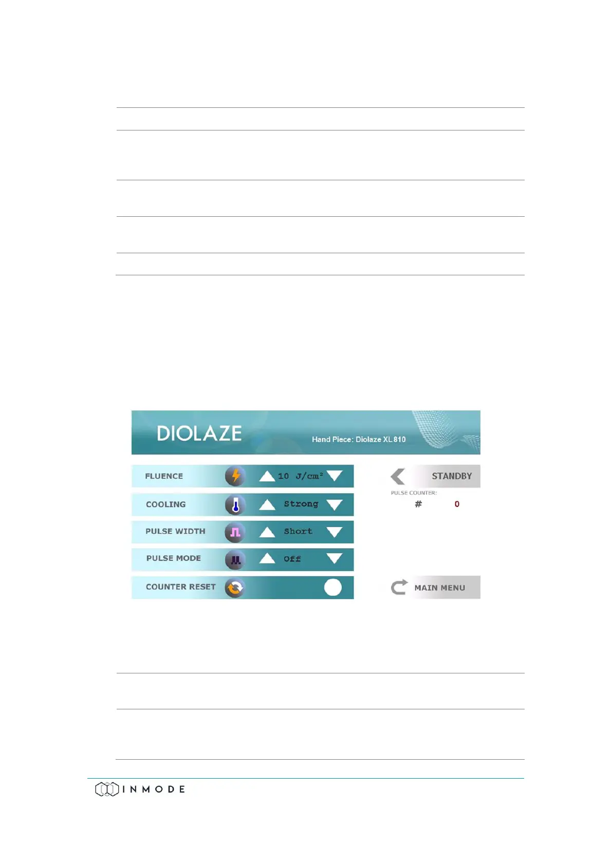 The DiolazeXL Treatment Screen contains: