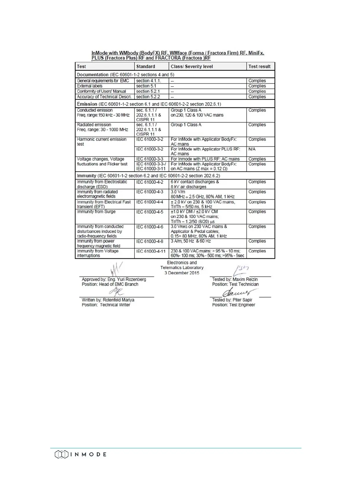 Table from IEC60601-1-2, / 5.2.2.1 C&F