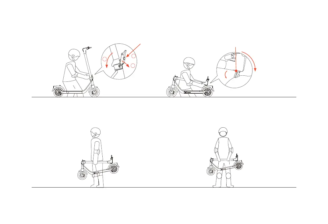 Carry the scooter by holding the handlebar stem. Watch out for bumps!