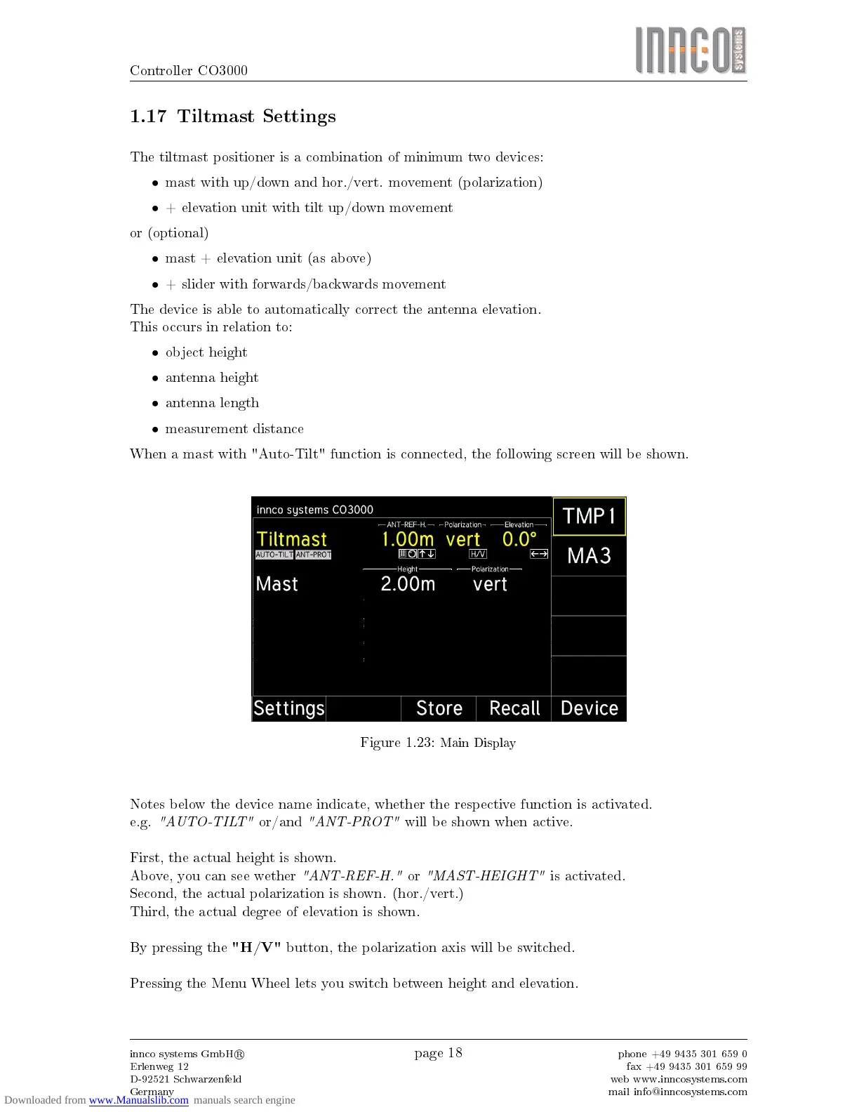 When a mast with "Auto-Tilt" function is connected, the following screen will be shown.