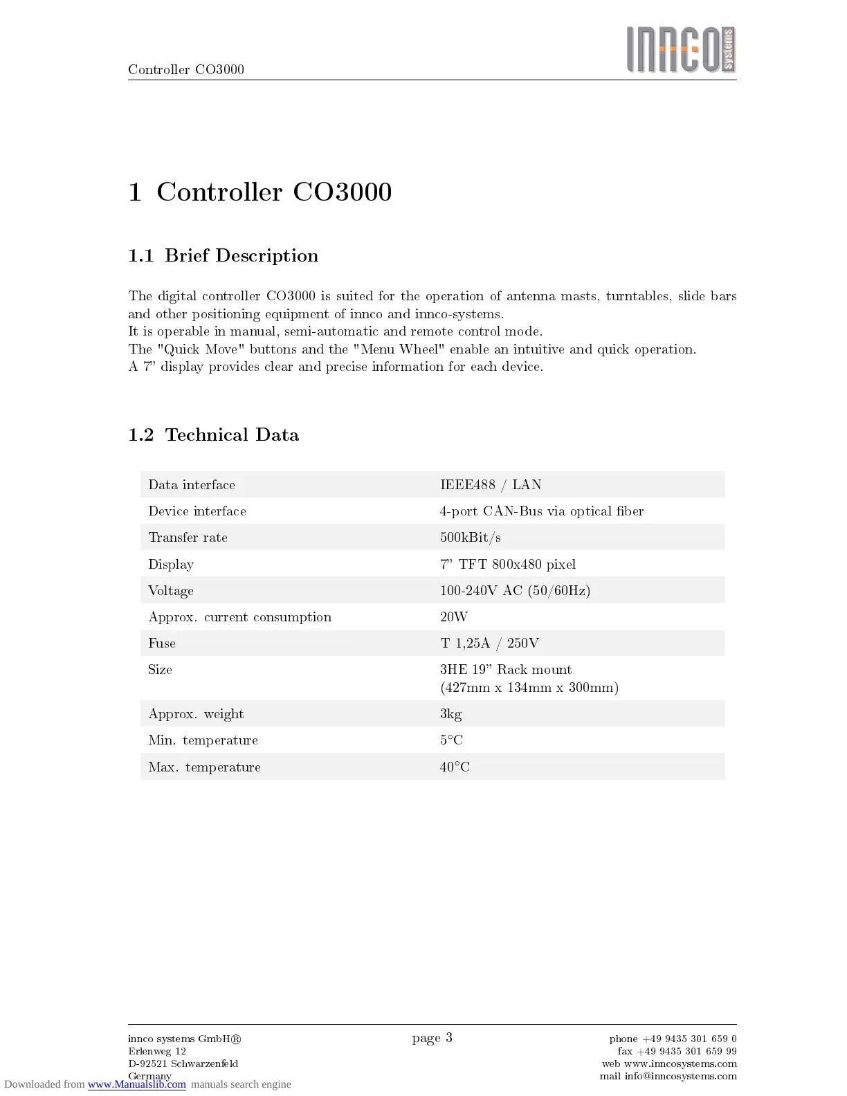The digital controller CO3000 is suited for the operation of antenna masts, turntables, slide bars