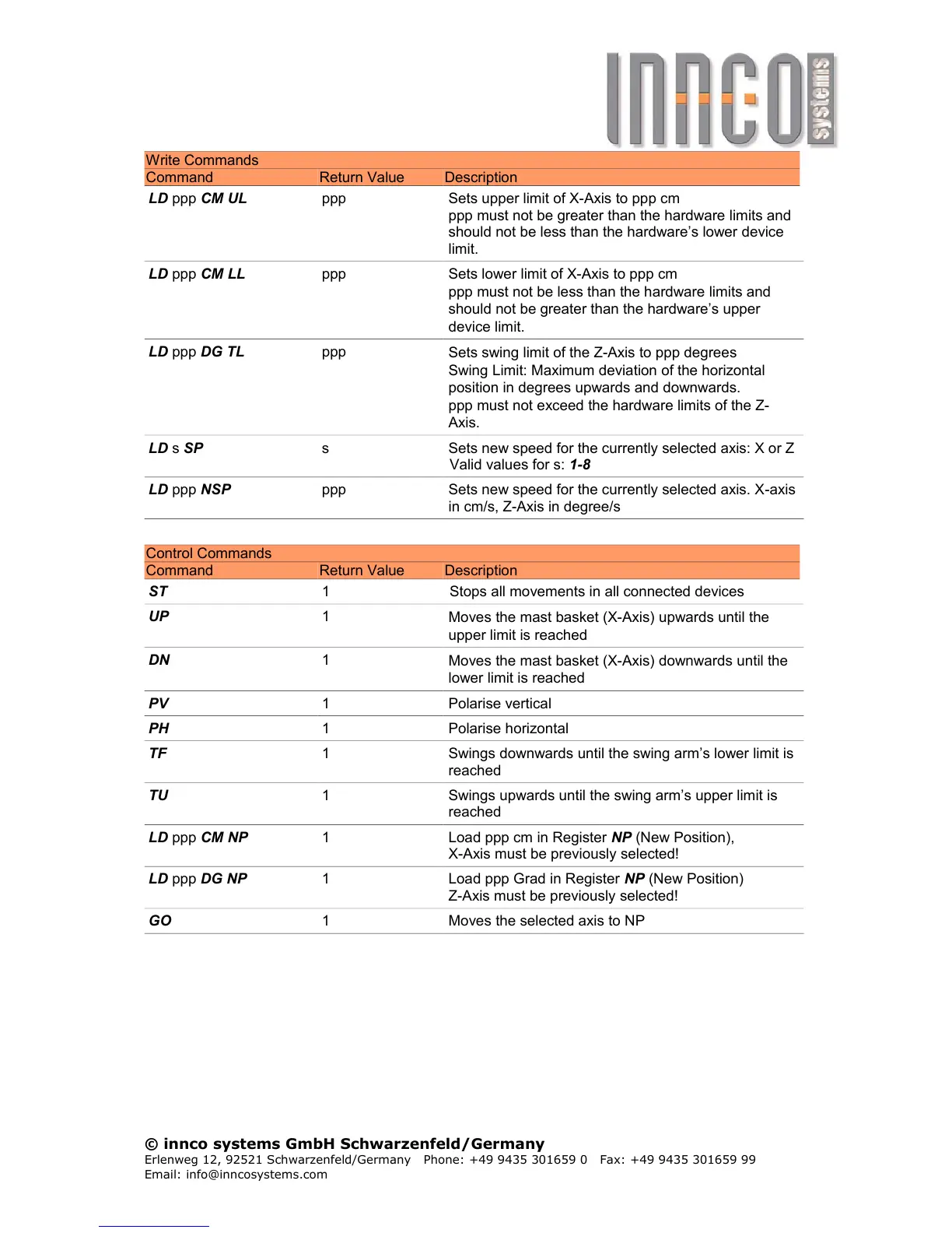 LD ppp NSP ppp Sets new speed for the currently selected axis. X-axis