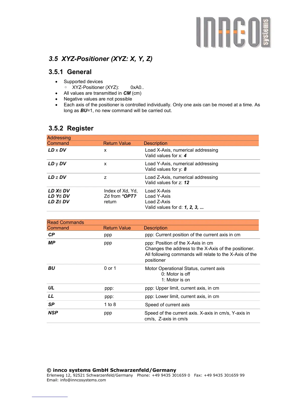 ◦ XYZ-Positioner (XYZ): 0xA0..