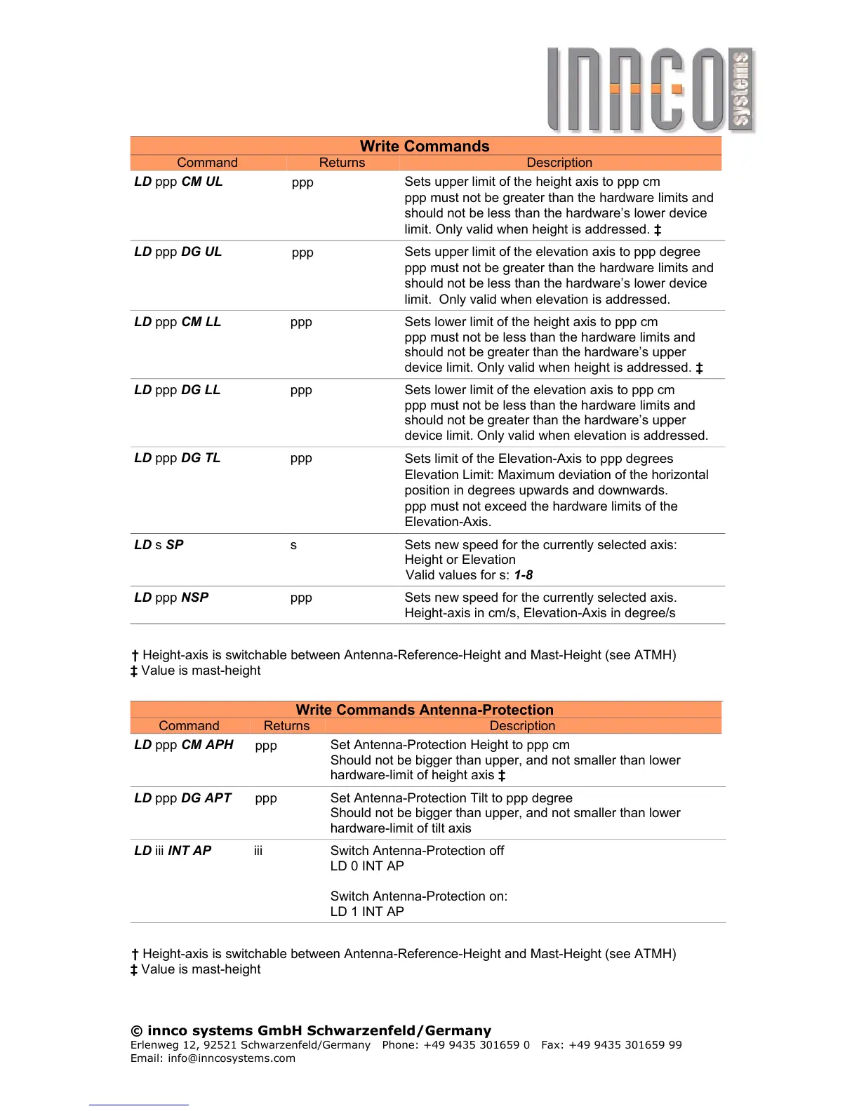 † Height-axis is switchable between Antenna-Reference-Height and Mast-Height (see ATMH)