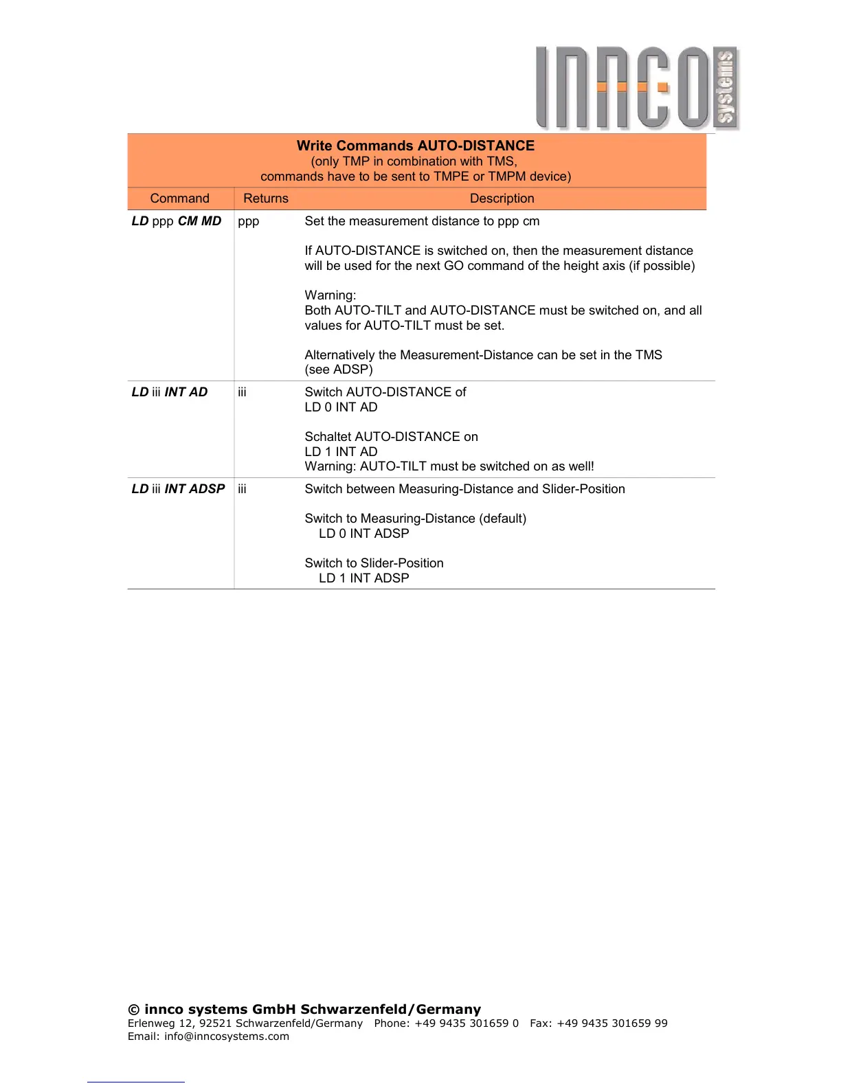 Write Commands AUTO-DISTANCE
