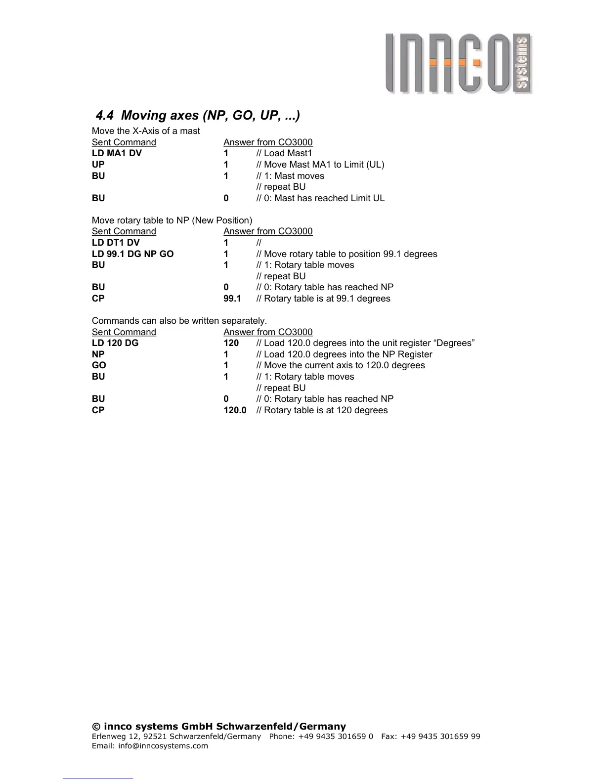LD 99.1 DG NP GO 1 // Move rotary table to position 99.1 degrees