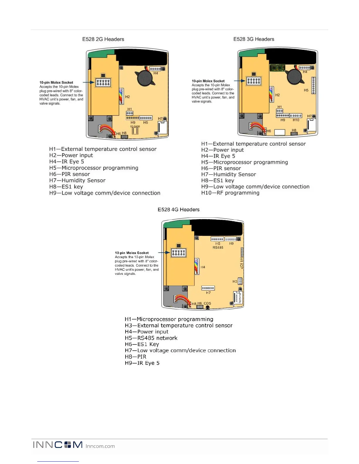 Inncom e528 - e528 Header and Socket Identification; Back Panel Header Descriptions