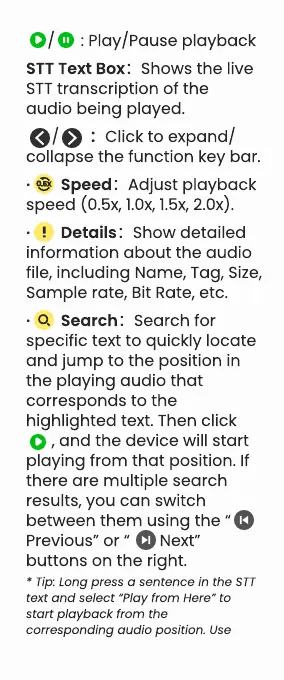 speed (0.5x, 1.0x, 1.5x, 2.0x).