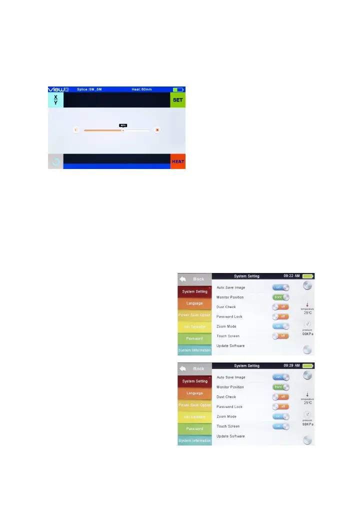 In the initial interface, press “◀” or “▶” to adjust the monitor brightness until a