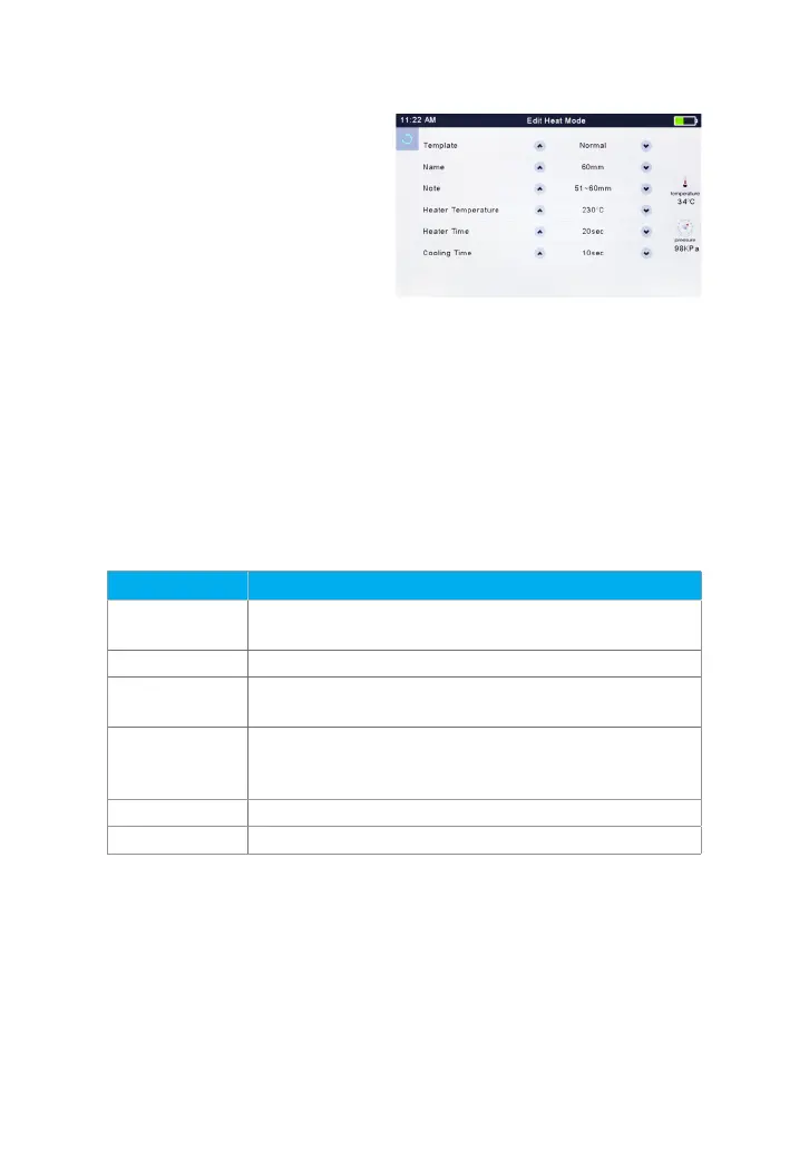 Note: The gray modes (40mm, 60mm) are the system preset initial heat modes