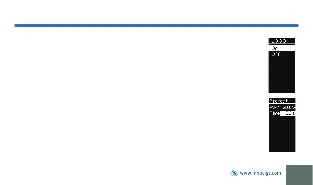können durch Betätigen der Steuerung zwischen “On” (Logo wird angezeigt) und “Off” (Logo