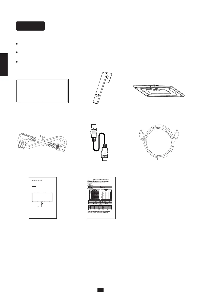 モニターのパッケージにすべての部品が入っていることをご確認ください。万が一、部品を紛失し