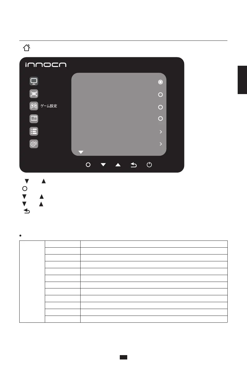 2. ボタンを押して OSD メニューを起動し、メイン・メニューを表示します。