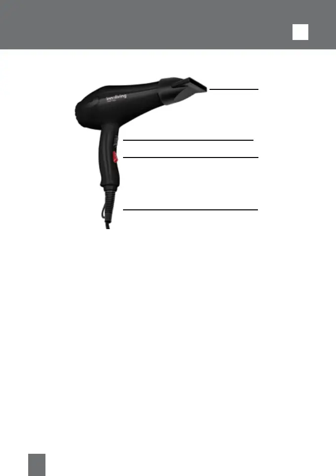 Set the speed switch to level III. Always direct the airow on the hair and away from the scalp,
