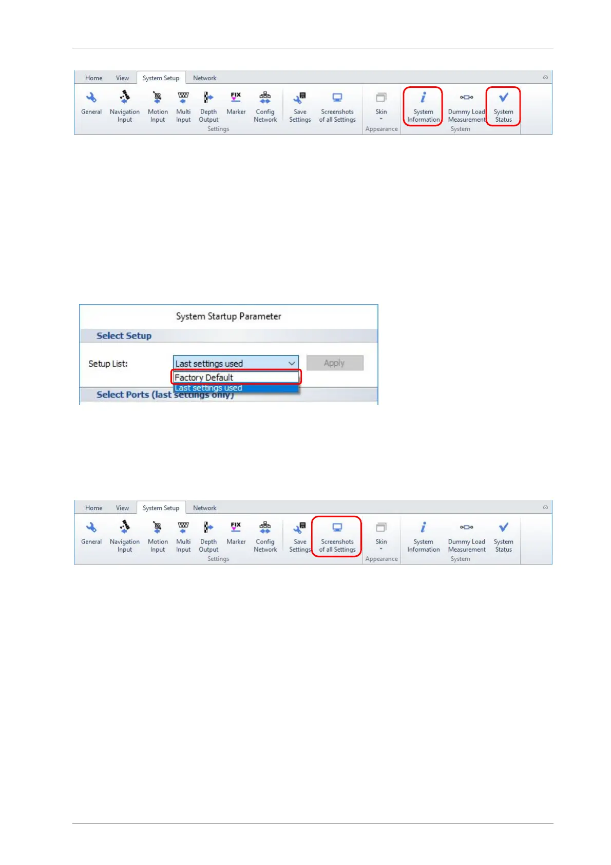 The SESWIN software starts by default with the last used settings. If for any reason these settings