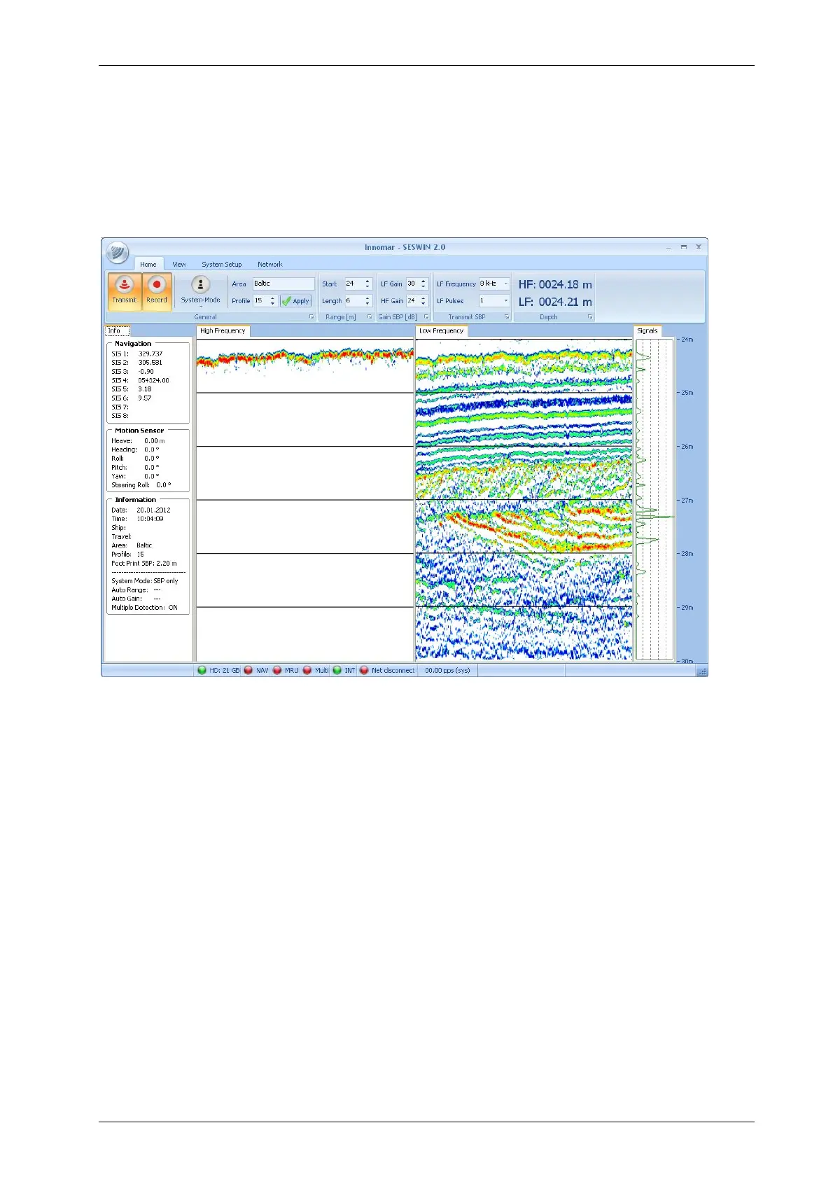 Example screen dump of INNOMAR’s SESWIN data acquisition software. Transmitter and receiver settings (top), sensor