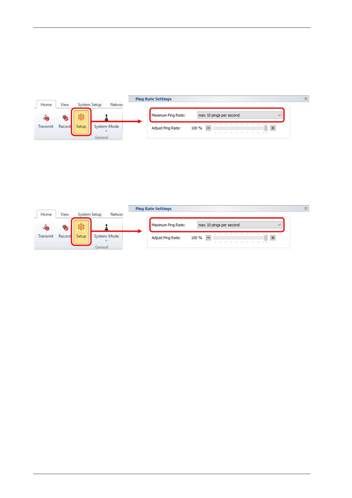 In normal operation the ping rate is calculated by the system based on the range settings, see