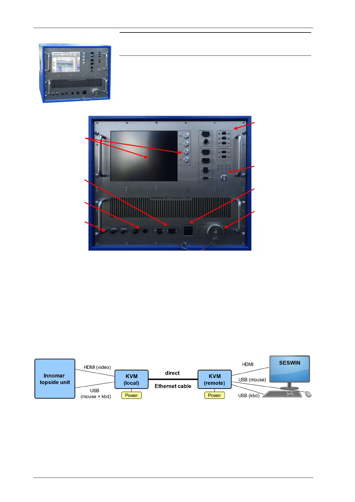 Keyboard, mouse and monitor are usually connected to the unit via KVM extender. This consists