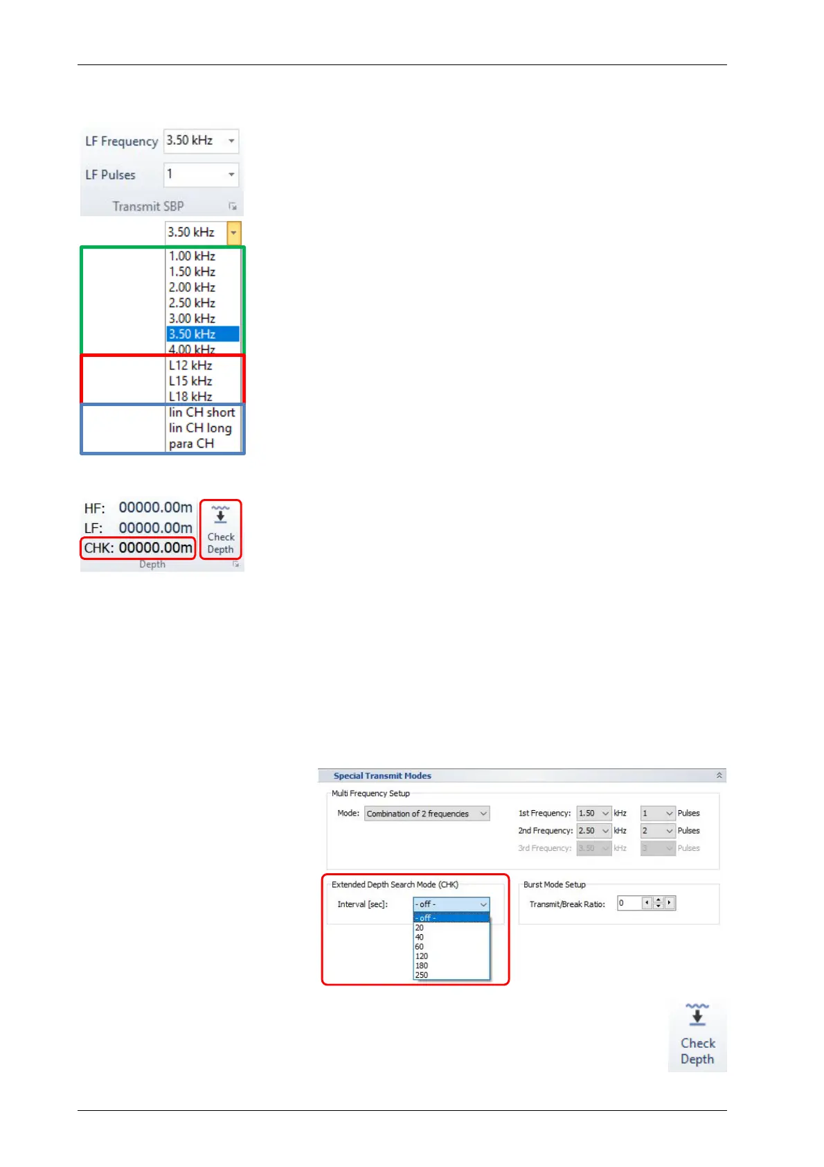 The manual depth check is started by pressing the “Check Depth” button. This starts