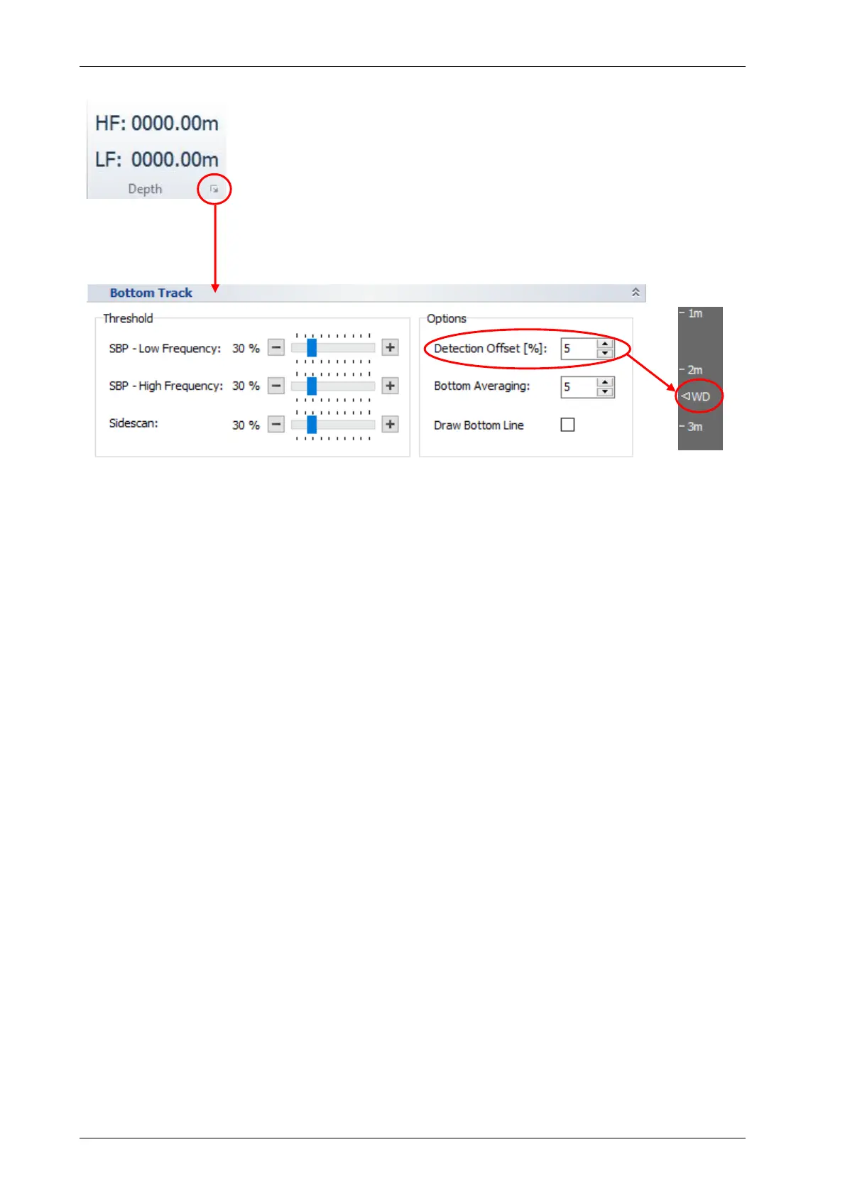 Detection Offset: If there is much noise or reverberation above the seabed’s return (e.g.