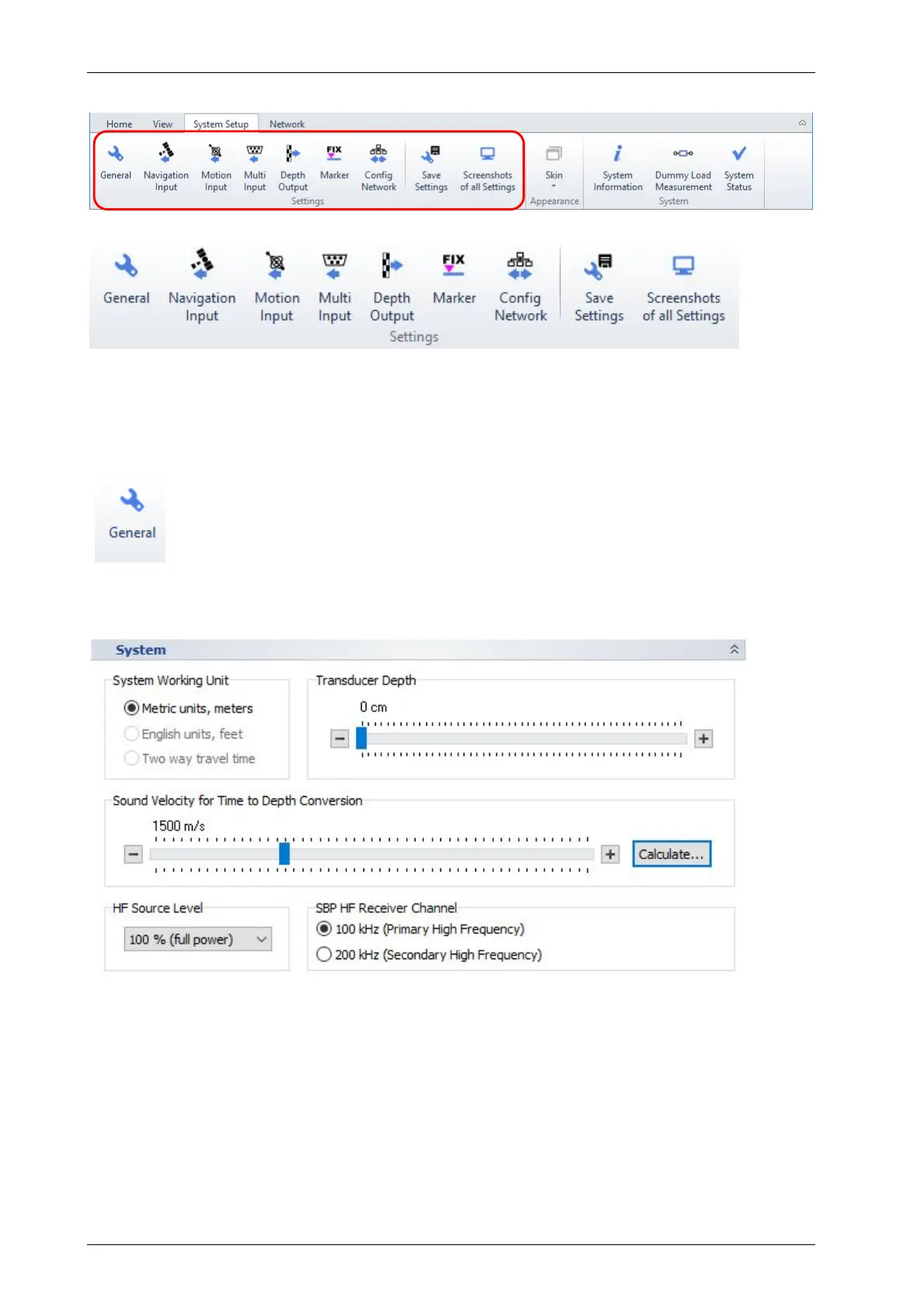 This is used to set general system parameters like transducer draught and