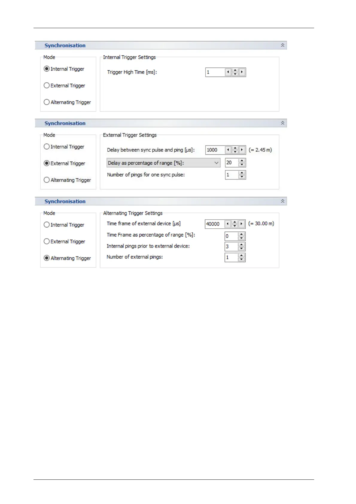 Internal Trigger Settings: If the INNOMAR SBP system is running as master, it is possible to set