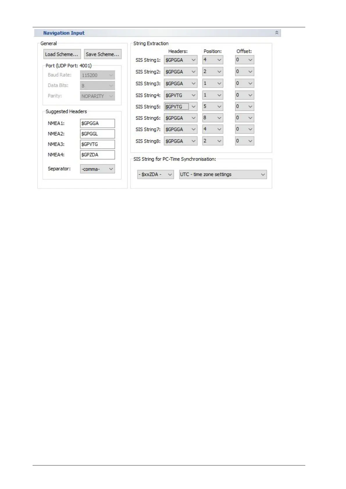 Headers” parameters to match your GNSS data stream.