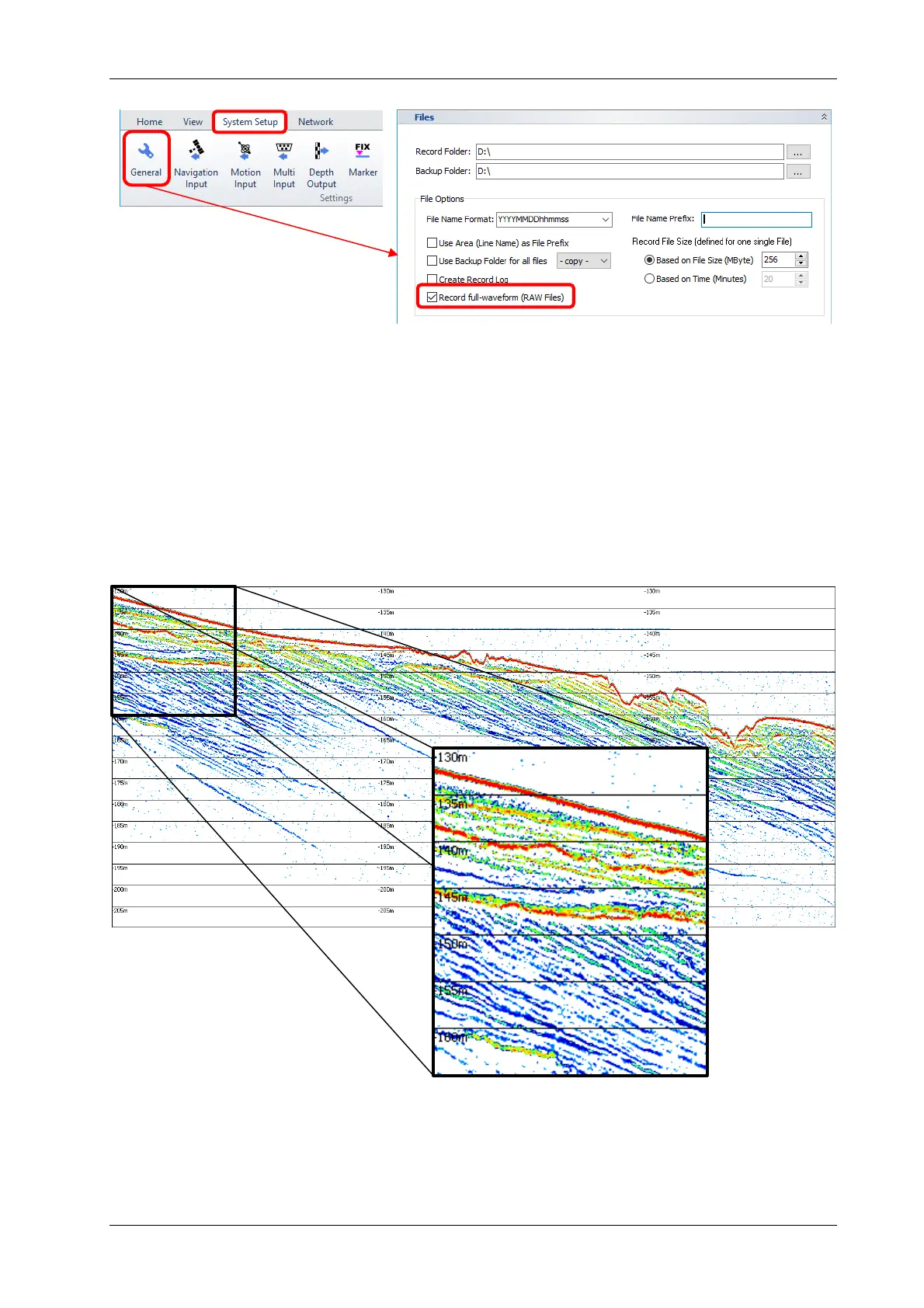 Below there is the same acoustic profile (record range set to 60m) shown from SES data (480