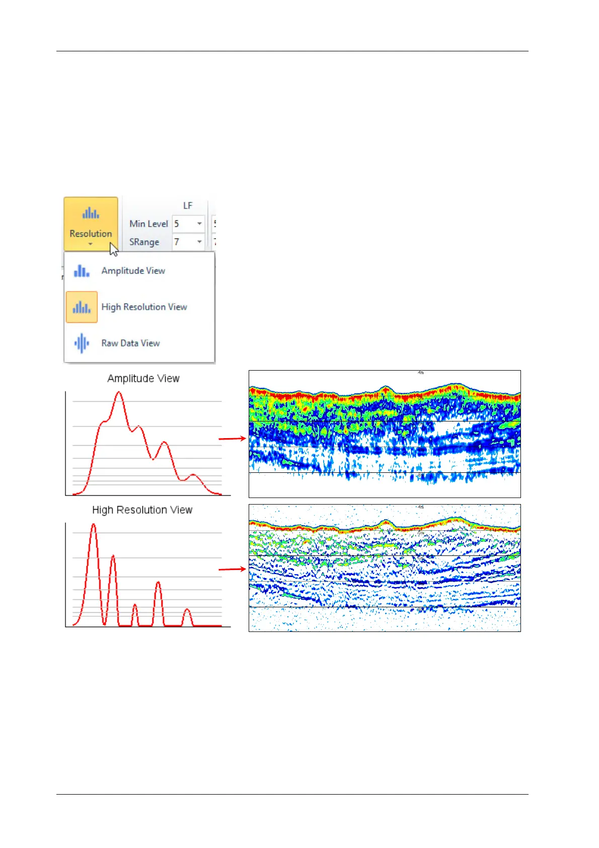 sediment structures. The “High Resolution” processing reduces the signal-to-noise ratio slightly.