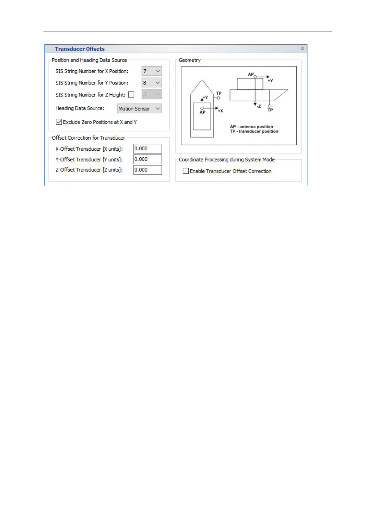 You may correct offsets if your GNSS position data do not refer to the transducer’s position.