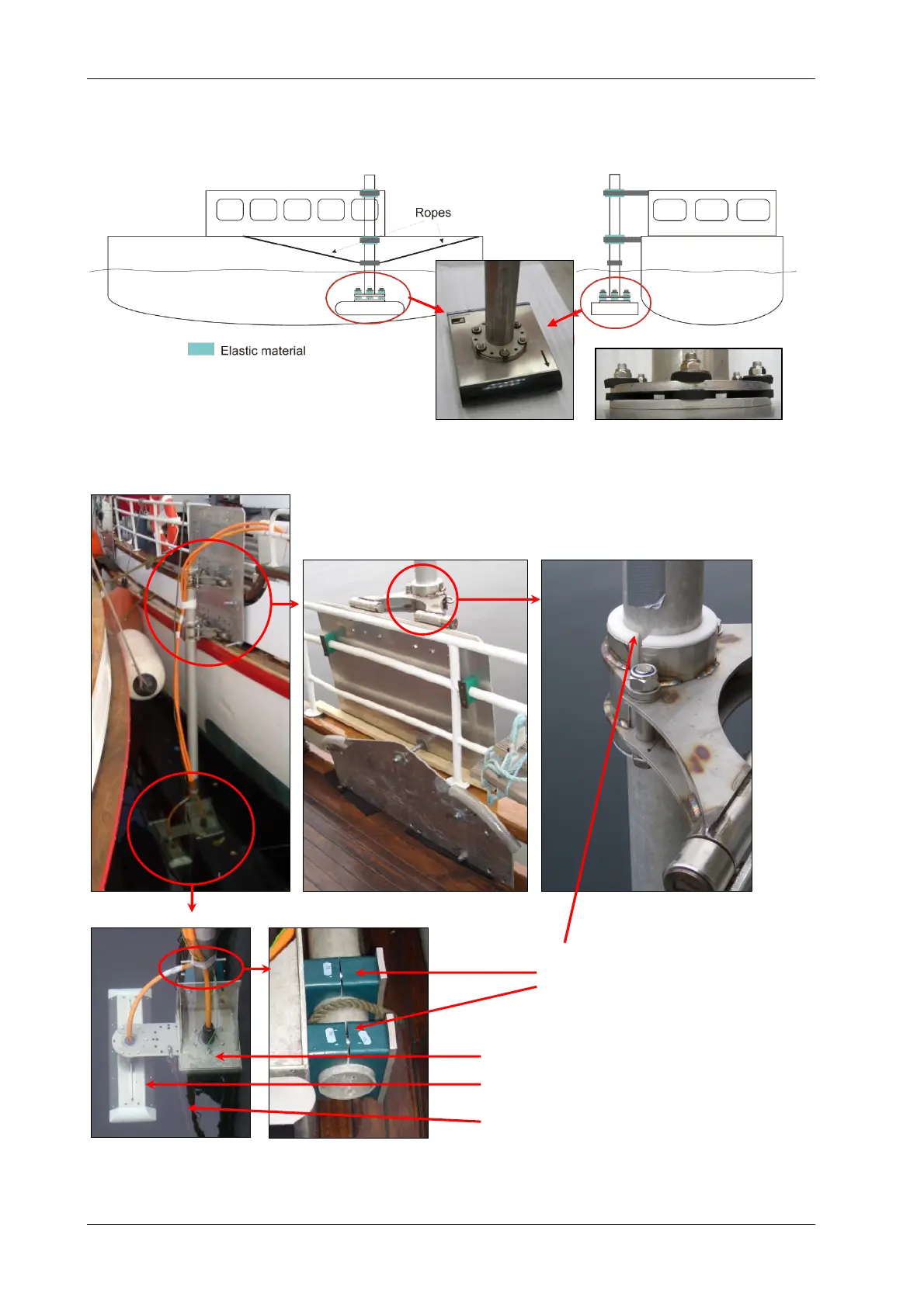 Rubber washers (provided by INNOMAR) to be used at the transducer. Note also the ropes to stabilize the pipe.