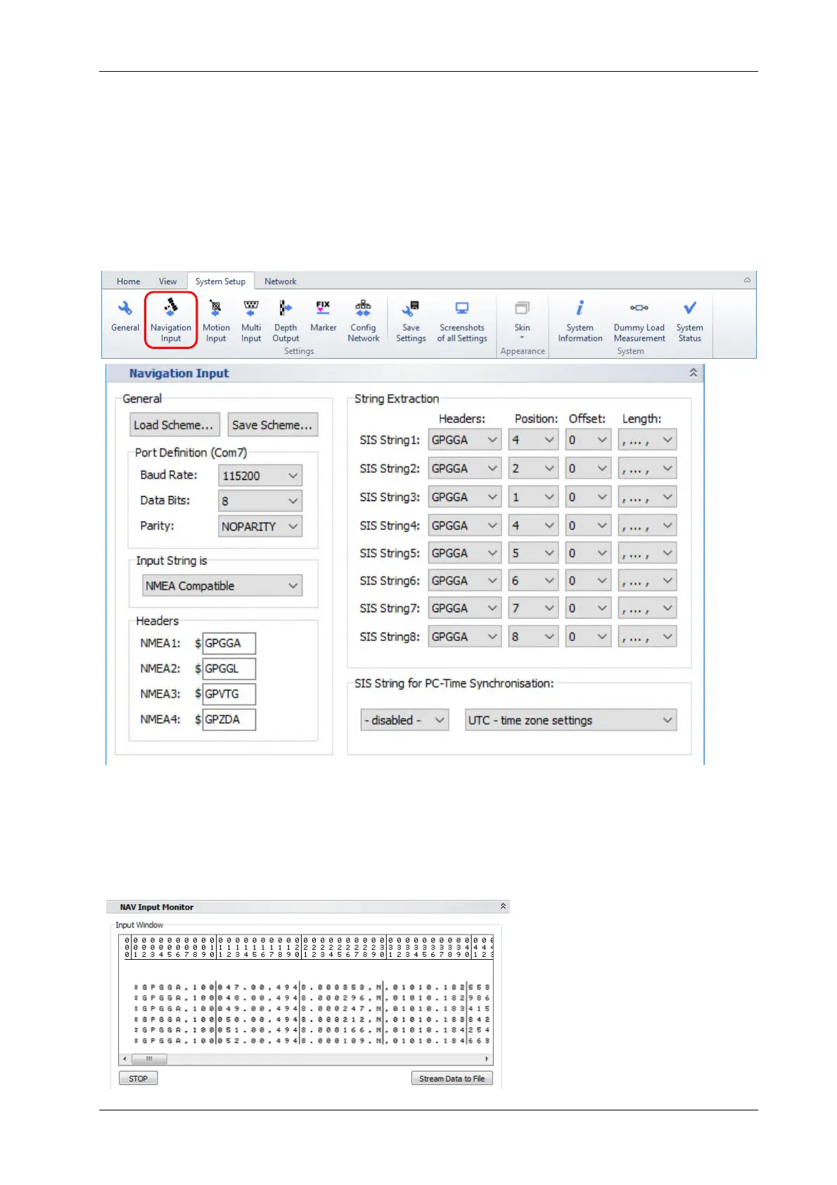 should see incoming data from the attached GNSS receiver in the “NAV Input Monitor”: