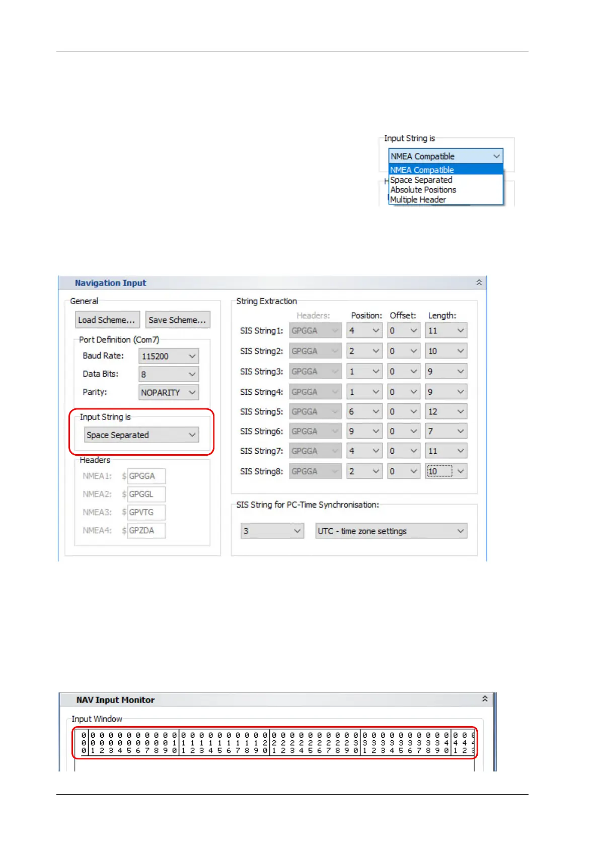 If there are data at the navigation port that are not NMEA compatible it is not possible to distin-