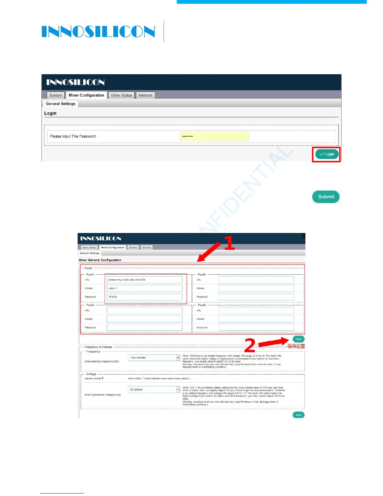 4.3 Enter the mining pool’s URL, Worker, password according to the following image, then click