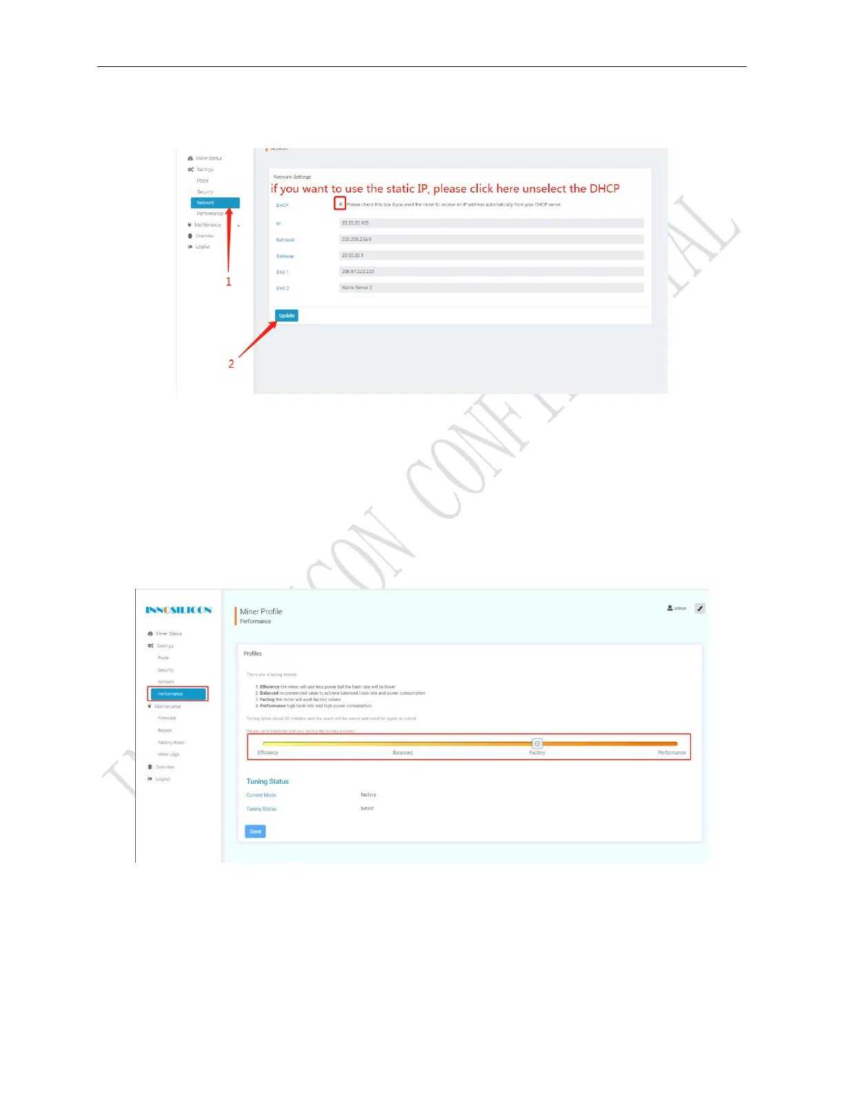 INNOSILICON T2THF BTC - Network Configuration; Other; Change the Operation Mode
