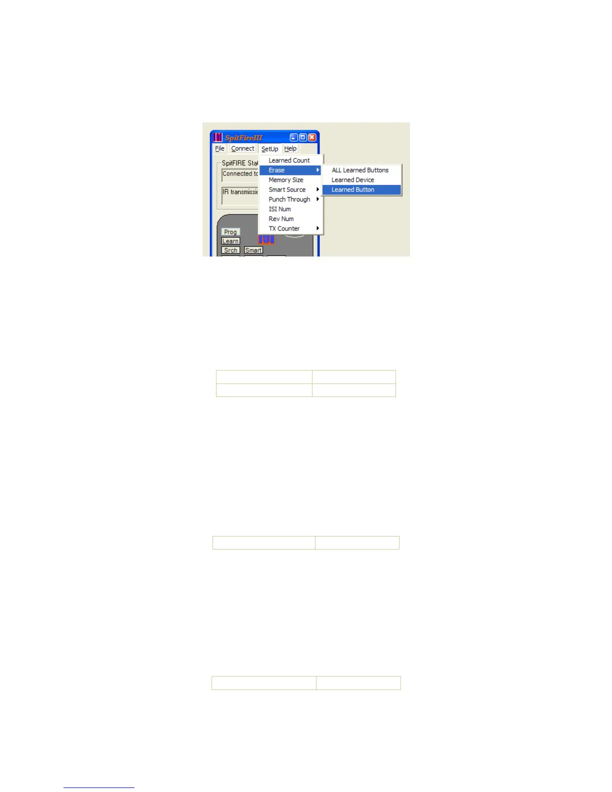 The Spitfire has three methods to un-learn IR codes. Un-learning can be accomplished one button