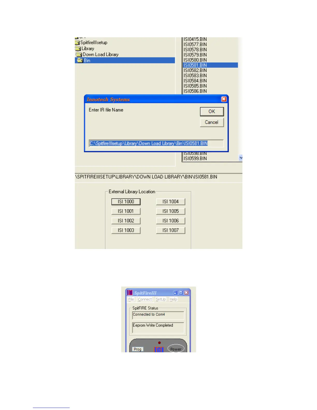 Click OK and the Spitfire will count down the file transfer, and display Eeprom Write