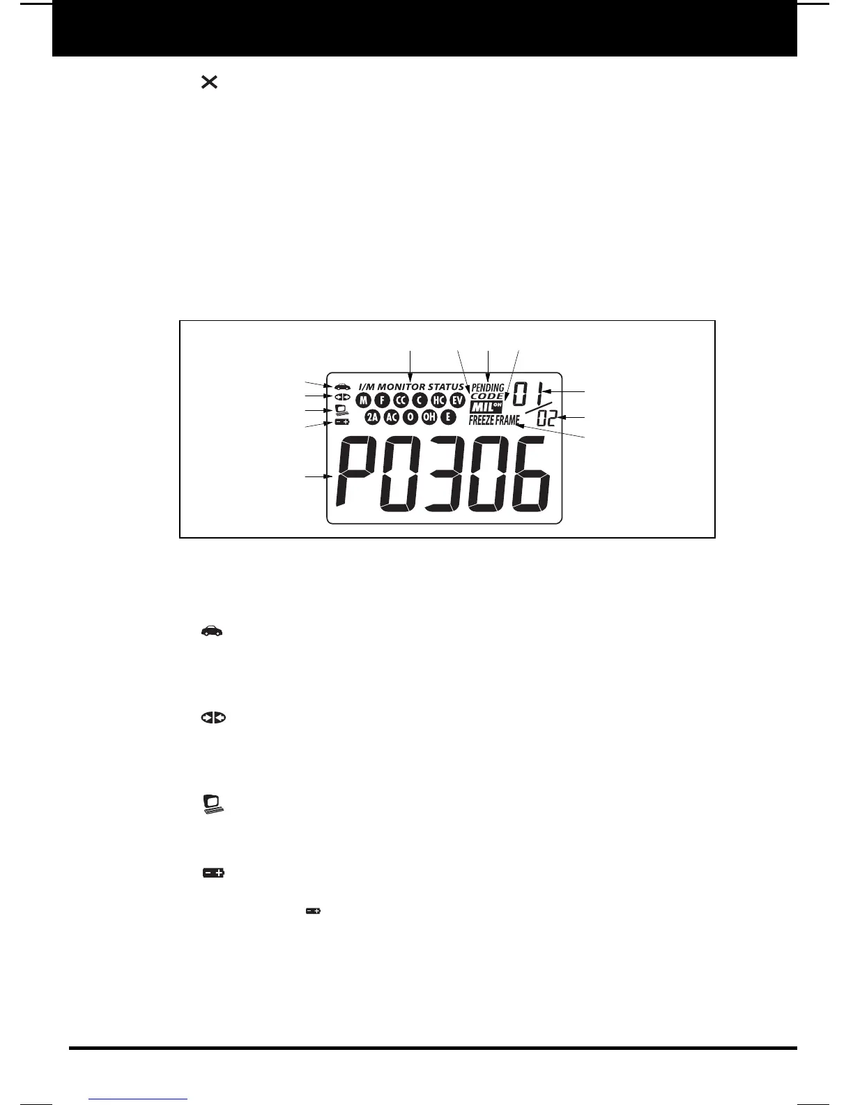 are shown on the Code Reader’s LCD display. In this case, the Multifunction