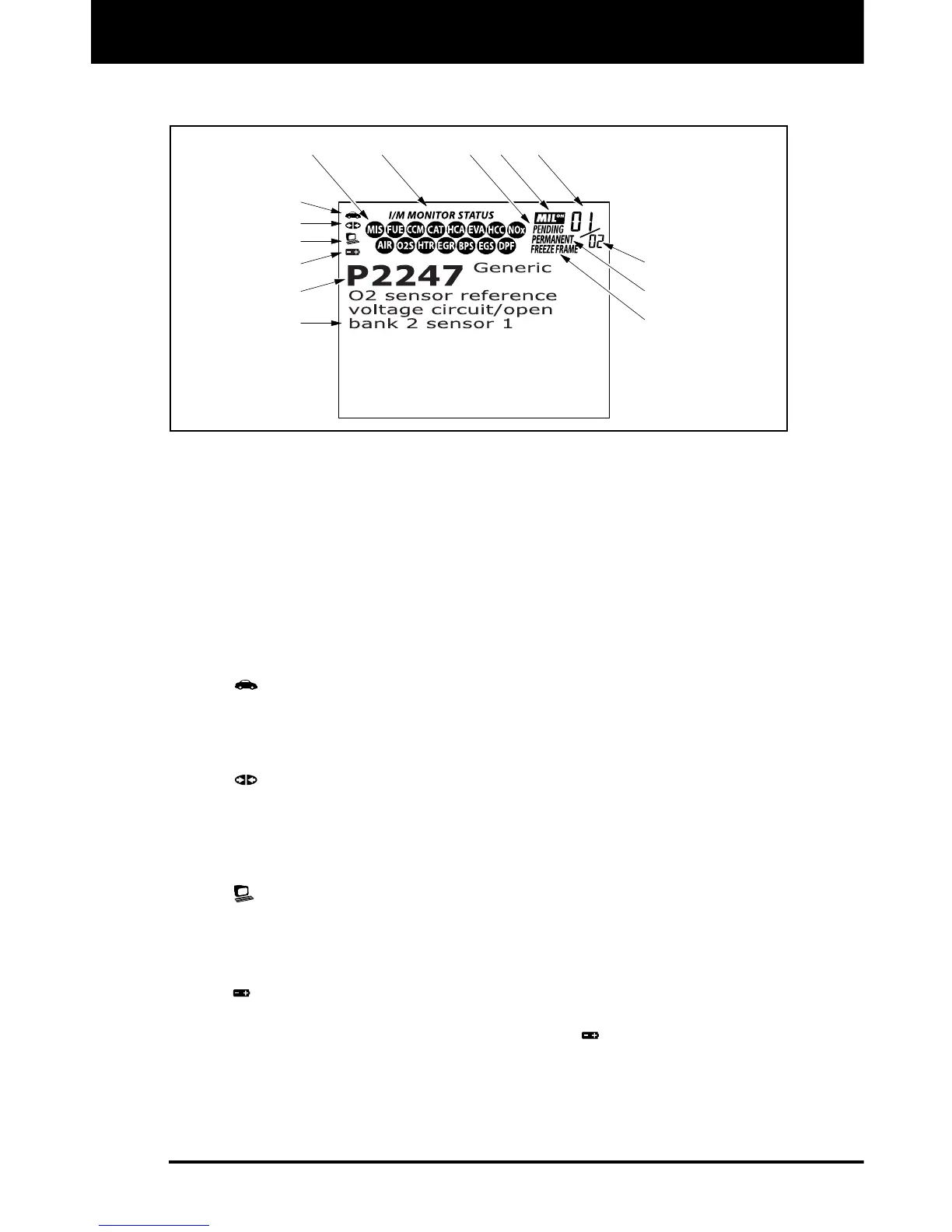 1. I/M MONITOR STATUS field - Identifies the I/M Monitor status area.