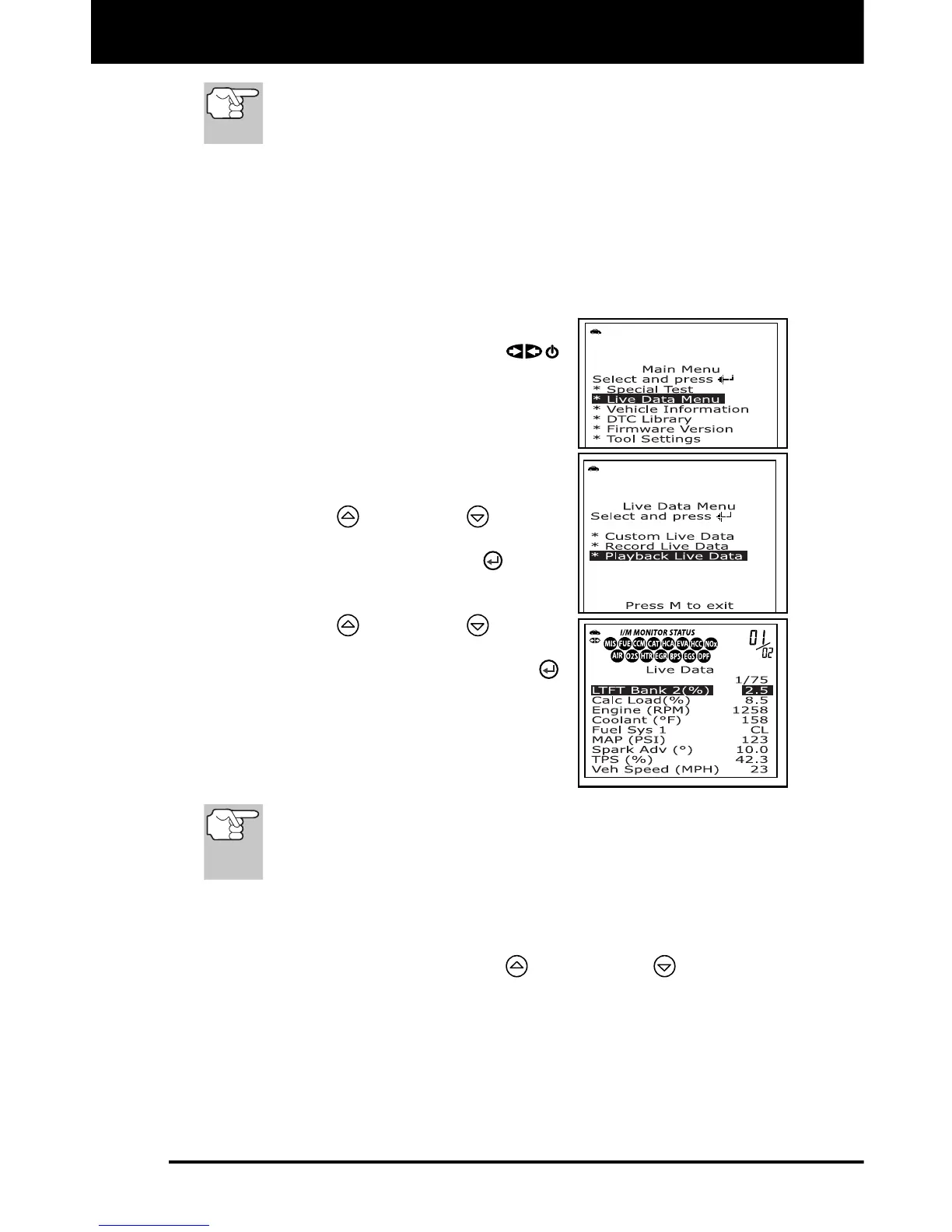 screen, the scan tool enters the "Live Data Playback" mode,