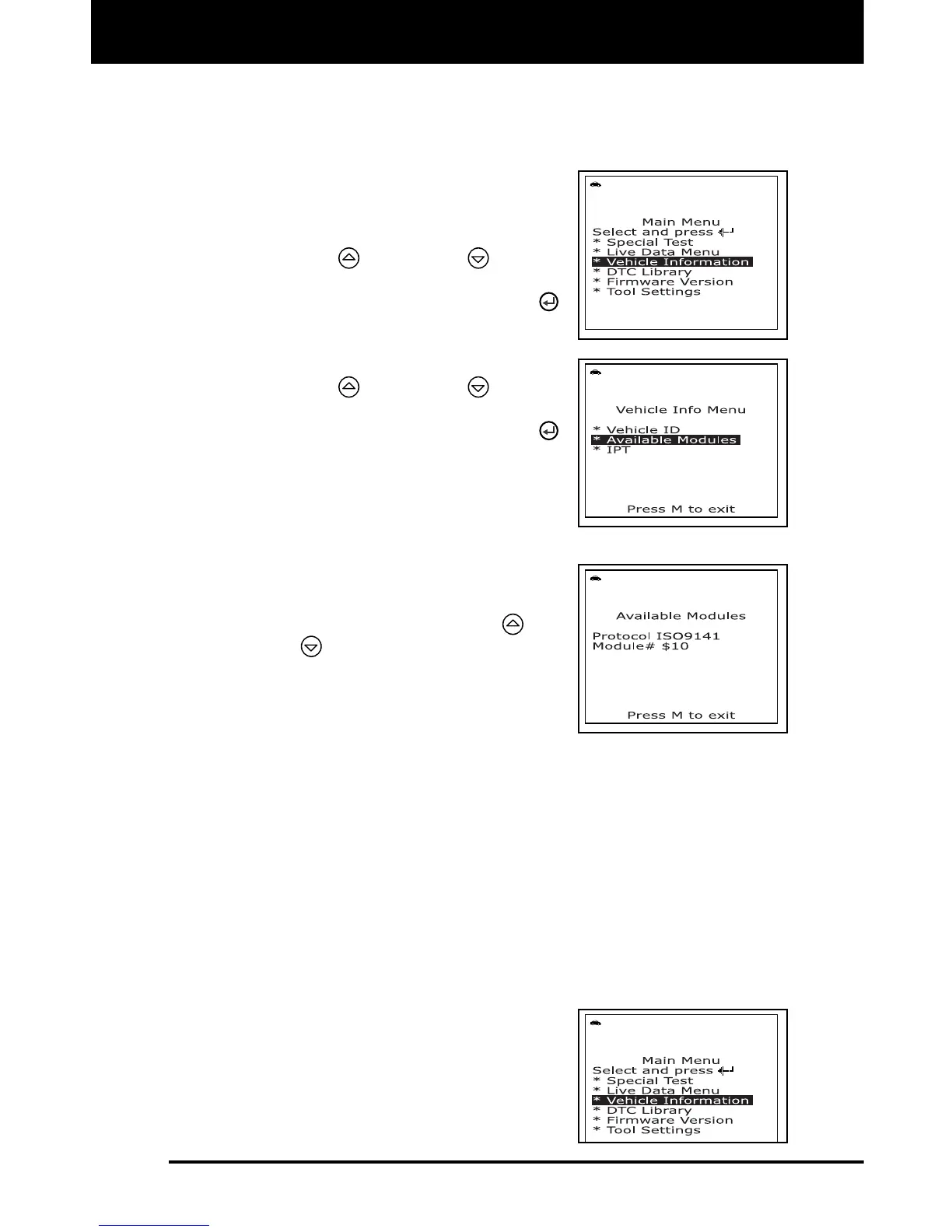 of available modules, press the M