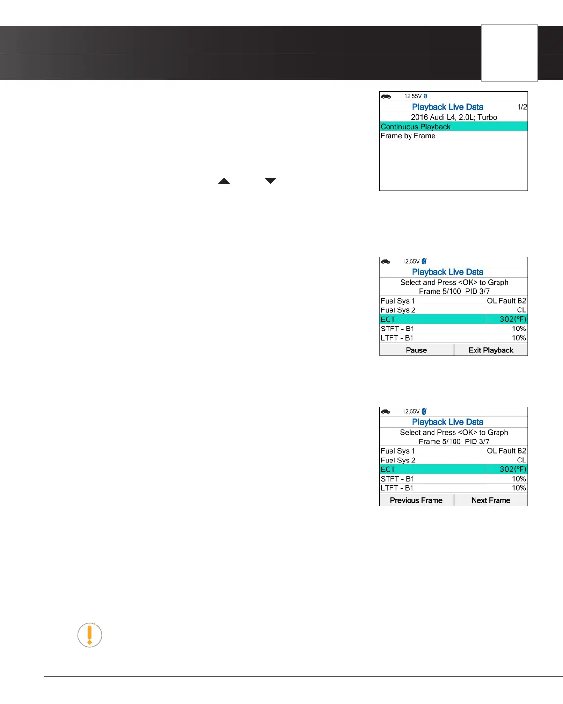 n To exit Live Data Playback mode, select Exit Playback at the