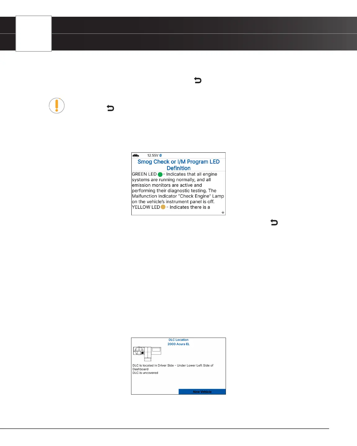 2. When you have nished viewing the Smog Check or I/M Program LED Denition, choose Back to return to Tool