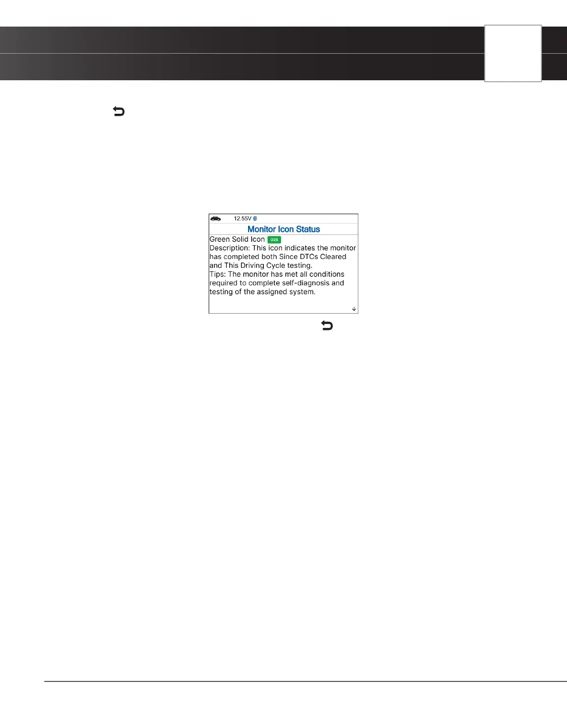 2. When you have nished viewing the Monitor Icon Status, press Back to return to Tool Library menu.
